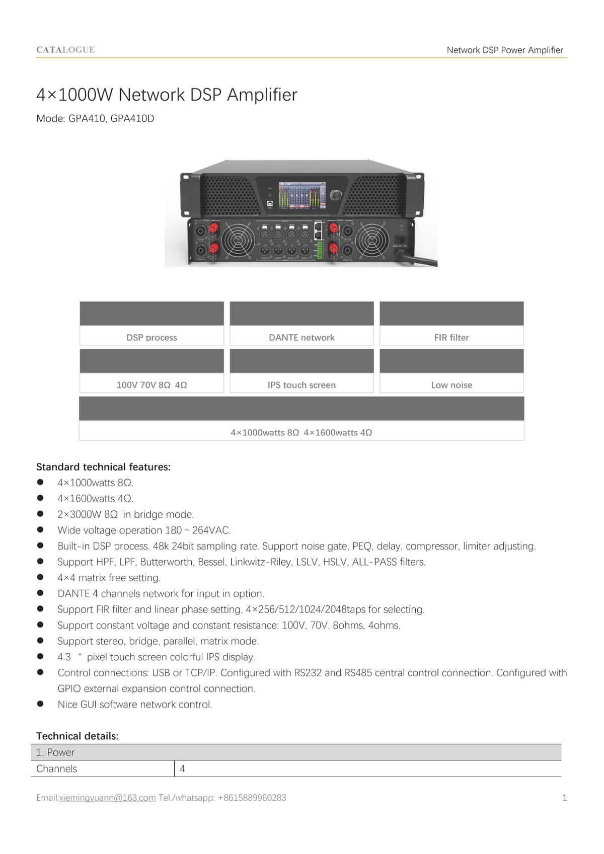 DSP Network Power Amplifier 2U4CH1K0W8O
